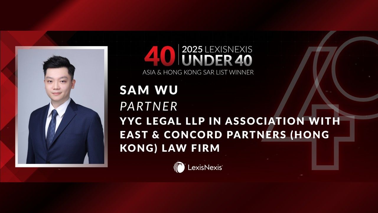 Sam Wu is recognised in the LexisNexis® 40 UNDER 40 2025 – Asia and Hong Kong SAR List